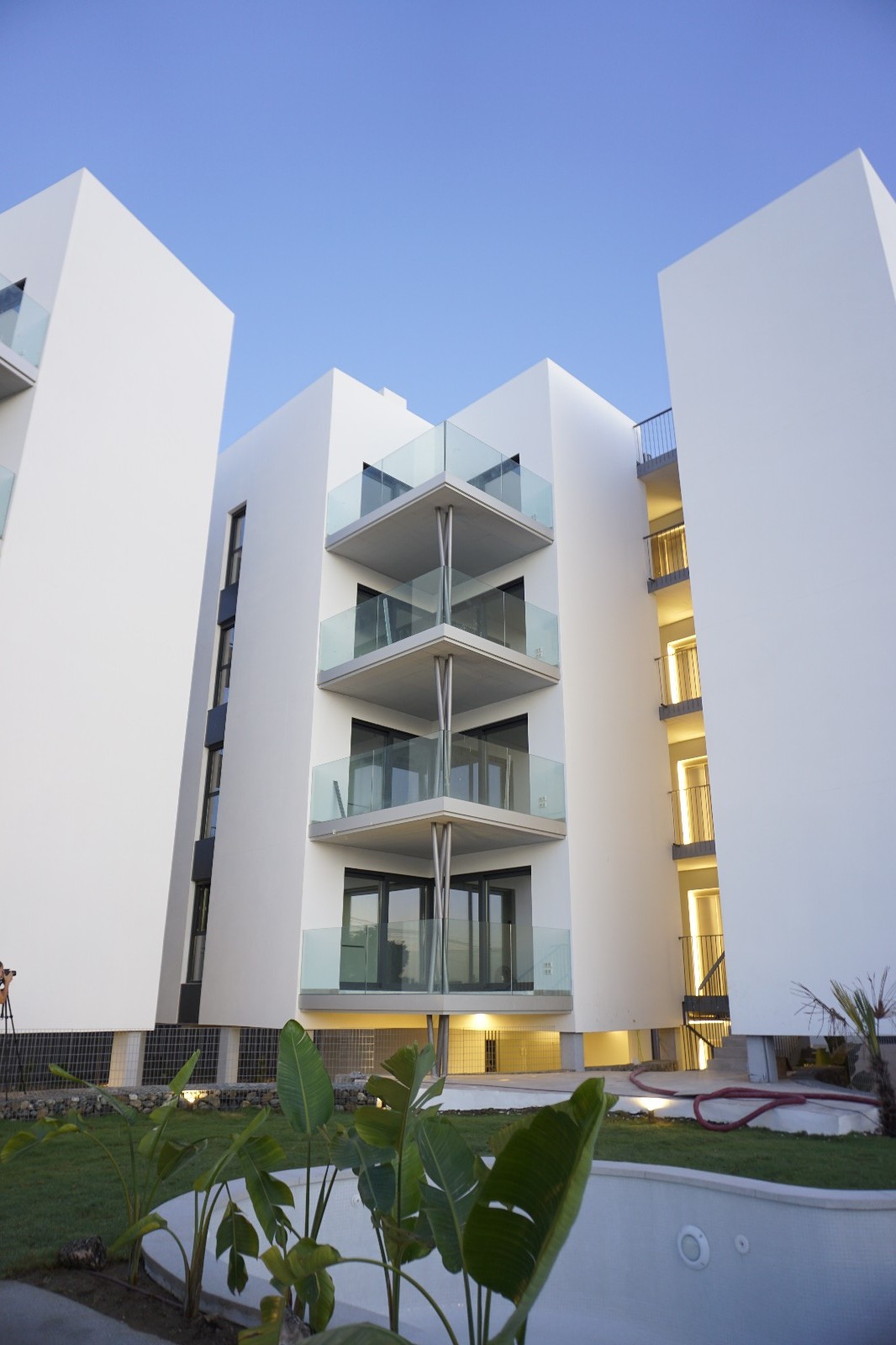 Promoción de viviendas situadas en el Barrio de los Pacos en Fuengirola. El proyecto desarrolla un conjunto formado por cuatro edificios, comunicados a través de recorridos abiertos (galerías), en las que se ubica el núcleo de comunicación vertical. Cada uno de los 4 volúmenes, cuenta con una vivienda por planta, sumando un total de 16 viviendas, de las que 8 viviendas cuentan con 2 dormitorios y 8 viviendas cuentan con 3 dormitorios.